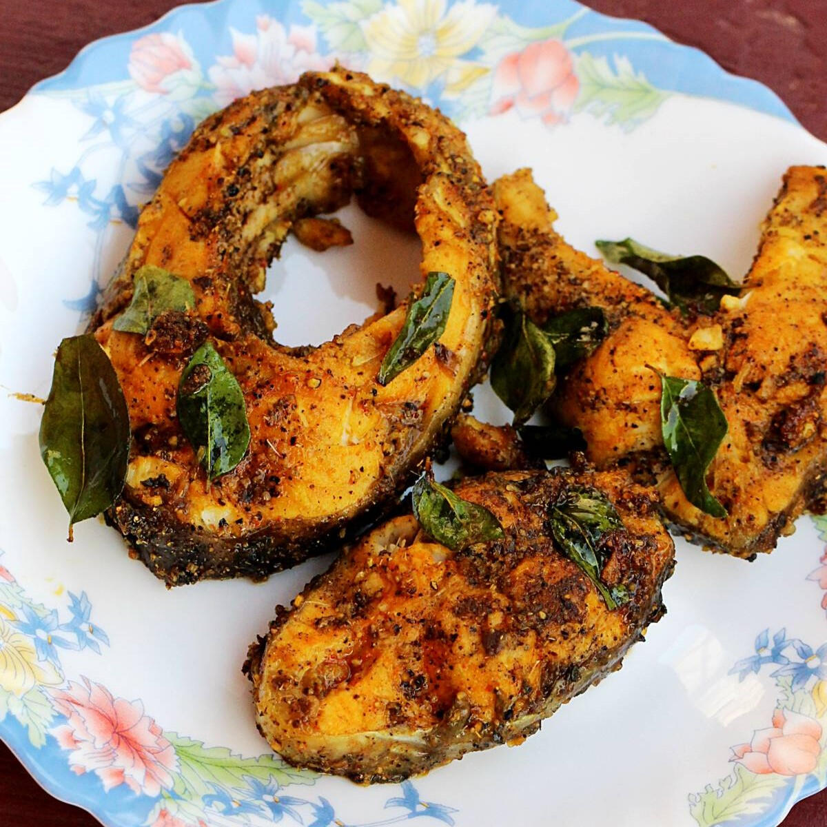 Lemon Pepper Fish || A simple but flavorful dish made from fish marinated in lemon juice, tumeric, chili powder, and salt. Seasoned with black pepper and fennel and then fried, it is then served with grilled vegetables and basmati rice.