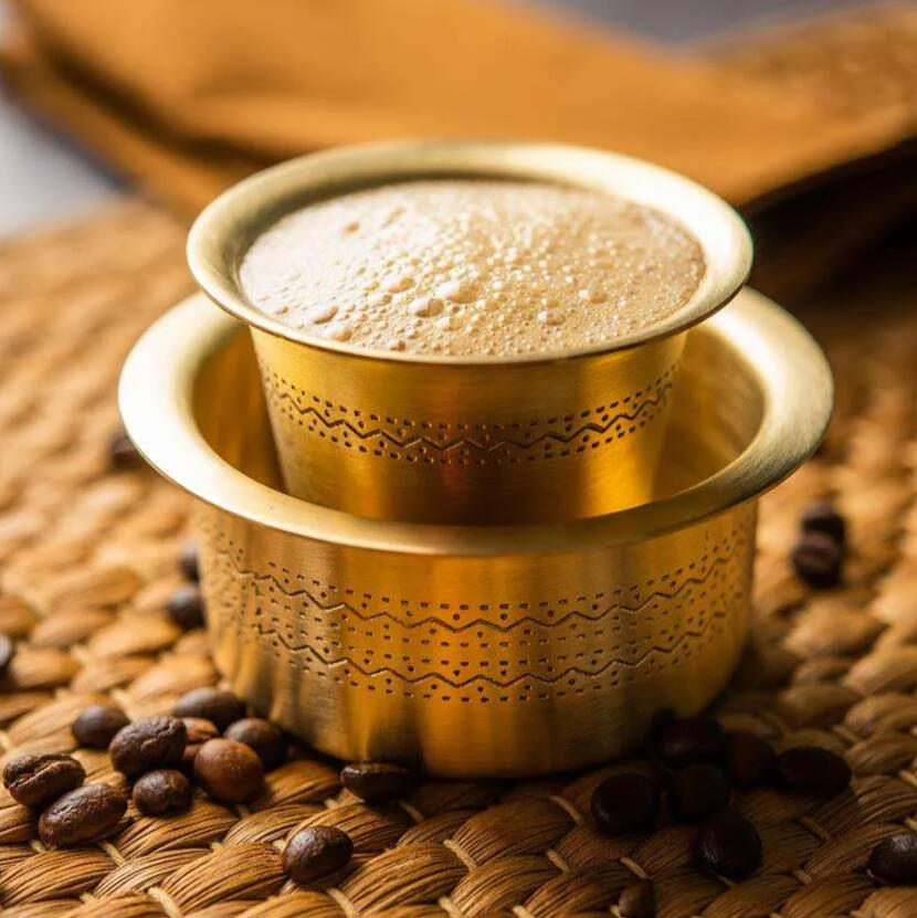 Thavnairian Kaapi || This traditional Thavnairian filter coffee is made with finely ground beans and chicory. With honey added as a sweetener, the flavor of this cup of coffee is unique to Thavnair.